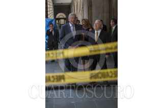 MÉXICO, D.F., 22JULIO2014.- Gerardo Ruiz Esparza, Secretario de Comunicaciones y Transportes, y Emilio Chuayffet, Secretario de Educación Pública, firmaron un convenio de colaboración para llevar luz eléctrica y conectividad a todas las escuelas de educación primaria. FOTO: MOISES PABLO / CUARTOSCURO.COM