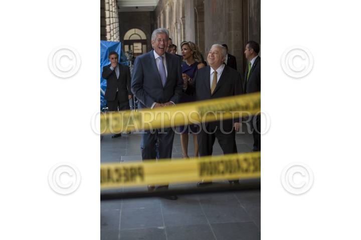 MÉXICO, D.F., 22JULIO2014.- Gerardo Ruiz Esparza, Secretario de Comunicaciones y Transportes, y Emilio Chuayffet, Secretario de Educación Pública, firmaron un convenio de colaboración para llevar luz eléctrica y conectividad a todas las escuelas de educación primaria. FOTO: MOISES PABLO / CUARTOSCURO.COM