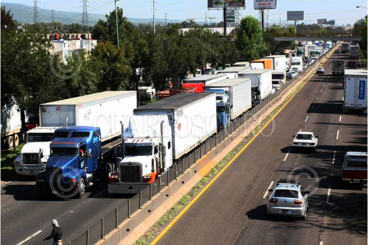 CUAUTITLÁN IZCALLI, ESTADO DE MÉXICO, 23JULIO2014.- Un aproximado entre 50 y 60 camiones de carga y transportistas provenientes de diferentes puntos de la República, bloquearon la Autopista México- Querétaro. Realizaron una marcha desde el km. 40 rumbo a la Av. 1º de Mayo en Naucalpan, como protesta por la restricción de horarios de circulación que se han implementado en la zona metropolitana, así como el alza del precio en los combustibles. FOTO: LUIS CARBAYO /CUARTOSCURO.COM