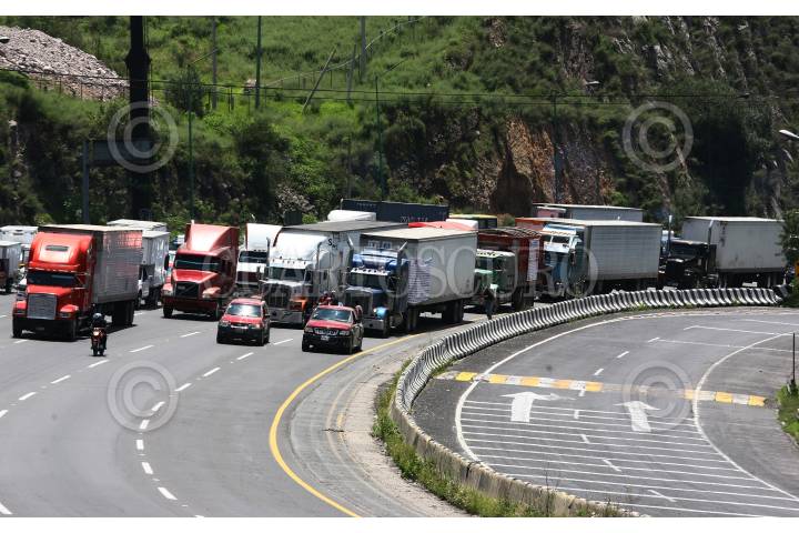 CUAUTITLÁN IZCALLI, ESTADO DE MÉXICO, 23JULIO2014.- Un aproximado entre 50 y 60 camiones de carga y transportistas provenientes de diferentes puntos de la República, bloquearon la Autopista México- Querétaro. Realizaron una marcha desde el km. 40 rumbo a la Av. 1º de Mayo en Naucalpan, como protesta por la restricción de horarios de circulación que se han implementado en la zona metropolitana, así como el alza del precio en los combustibles. FOTO: LUIS CARBAYO /CUARTOSCURO.COM