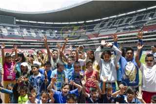 MÉXICO, D.F., 23JULIO2014.- Alumnos integrados al Programa Saludarte, programa caracterizado por la implementación de las artes en el modelo educativo de 58 primarias públicas, acudieron al Estadio Azteca como reconocimiento a su buen desempeño escolar. Sin embargo, personal del Estadio Azteca les impidió la entrada durante el entrenamiento del equipo de futbol América, por lo que tuvieron que esperar en promedio 1 hora y media afuera de las instalaciones deportivas. FOTO: MARÍA JOSÉ MARTÍNEZ /CUARTOSCURO.COM