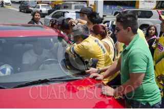MÉXICO, D.F., 23JULIO2014.- Fanáticos del equipo de futbol del América esperaron la salida de los jugadores en promedio tres horas para pedirles un autógrafo o tomarse una fotografía con ellos. FOTO: MARÍA JOSÉ MARTÍNEZ /CUARTOSCURO.COM