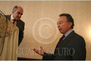 MEXICO, DF, 26 ENERO 2006.- Luis Téllez K. y Guillermo Ortiz, gobernador del Banco de Mèxico durante la conferencia de prensa donde dio conocer el “Encuentro Cultural México-E.U.”. FOTO: Leonardo Casas/CUARTOSCURO.COM