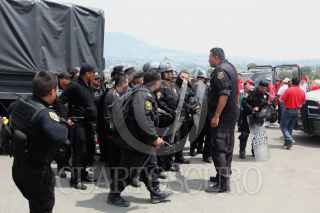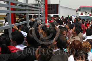 LOS REYES LA PAZ, 24JULIO2014.- Habitantes de los Reyes la Paz intentaron dar portazo durante la inauguración del mega proyecto deportivo Soraya Jiménez, Plaza Estado de México, después que elementos de seguridad y personal de logística les negaron el acceso. Granaderos del Edomex asistieron al lugar para para resguardar los acceso al deportivo. FOTO: SAUL LOPEZ /CUARTOSCURO.COM