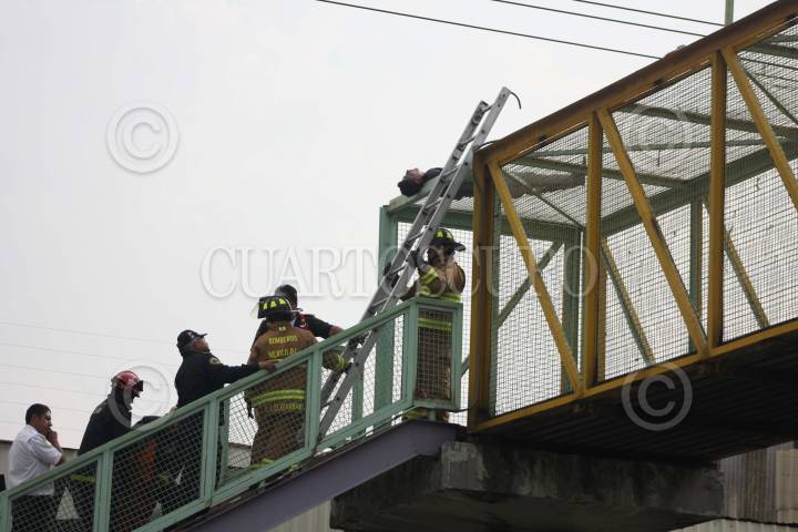 MEXICO D.F. 25JULIO2014.- Un joven perdió la vida tras ser electrocutado por cables de alta atención cuando imprudentemente caminaba sobre un puente peatonal ubicado en la Calzada Ignacio Zaragoza al cruce con la calle de Santa Teresa en la colonia Tepalcates en la delegación Iztapalapa. FOTO: SAUL LOPEZ /CUARTOSCURO.COM