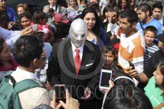 MÉXICO, D.F., 25JULIO2014.- El Hijo del Santo se toma algunas fotos con sus seguidores al finalizar la ceremonia en la cual el Ejecutivo Federal recibió al Primer Ministro Japones en el Palacio Nacional. FOTO: SAÚL LÓPEZ /CUARTOSCURO.COM