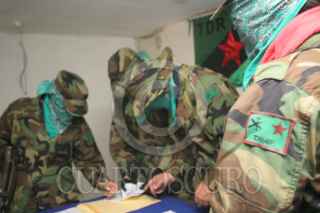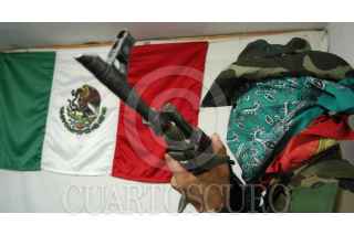 NOTA DE EDITOR.- En la Agenda del Día se encuentran el texto integro de los comunicados. LUGAR DESCONOCIDO, 26 ENERO 2006.- Mas de una docena de integrantes del grupo armado guerrillero Tendencia Democrática Revolucionaria-Ejercito del Pueblo (TDR-EP) ofrecieron una conferencia de prensa para informar su decisión de establecer una tregua durante los meses de Enero y julio del 2006, comprometiendose así a no desarrollar ninguna acción político-militar. Asimismo expresaron su simpatía con la "Otra campaña" emprendida por el EZLN. FOTO: Germàn Romero/CUARTOSCURO.COM