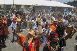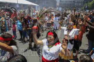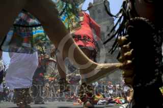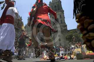 MÉXICO, D.F., 26JULIO2014.- Capitalinos que gustan de vestir como nuestros antepasados prehispánicos bailaron para conmemorar un año más de la fundación de México-Tenochtitlán. FOTO: MOISÉS PABLO /CUARTOSCURO.COM