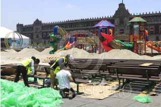 MÉXICO, D.F., 26JULIO2014.- Un complejo de juegos infantiles están siendo colocados en el Zócalo para los niños capitalinos quienes están iniciando su periodo vacacional. FOTO: MOISÉS PABLO /CUARTOSCURO.COM