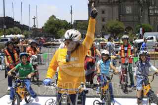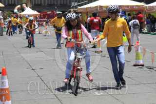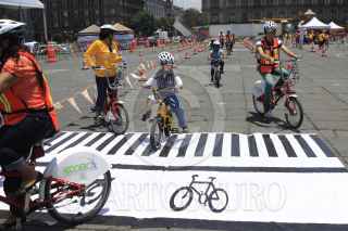 MÉXICO, D.F., 26JULIO2014.- Niños, jóvenes y adultos aprenden a andar en bicicleta y a las reglas que se necesitan cuando uno viaja a este transporte, la bici escuela esta instalada en el Zócalo. FOTO: MOISÉS PABLO /CUARTOSCURO.COM