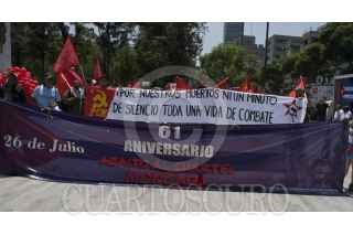 MÉXICO, D.F., 26JULIO2014. Se realizó una marcha con organizaciones civiles, el Partido Comunista Mexicano el Frente Nacional del Movimiento Urbano Popular, para exigir la liberación de los 5 cubanos capturados por supuesto espionaje. El contingente partió del Hemiciclo a Juárez hacia La Embajada de los Estados Unidos. FOTO: ADRIANA VEGA FERNÁNDEZ /CUARTOSCURO.COM