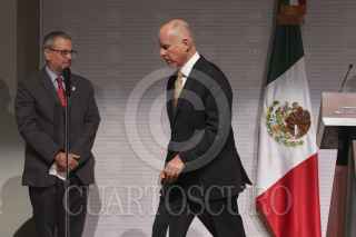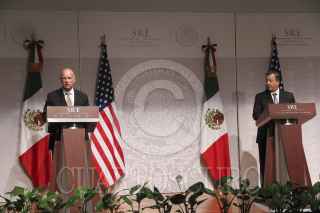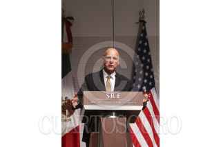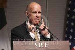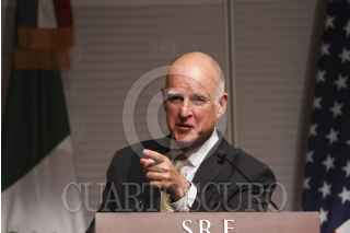 MÉXICO, D.F., 28JULIO2014.- Jerry Brown, gobernador de California, en compañía de José Antonio Meade Kuribrena, Secretario de Relaciones Exteriores, realizó una conferencia de prensa en el Museo Memoria y Tolerancia. La temática de la conferencia se centró en la problemática de los niños migrantes y su repatriación. FOTO: ADOLFO VLADIMIR /CUARTOSCURO.COM