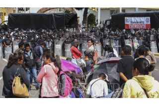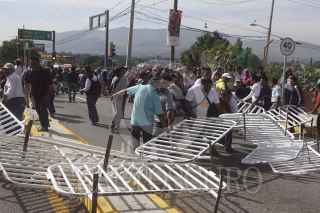 OAXACA, OAXACA, 28JULIO2014.- Integrantes de la sección 22 de la Coordinadora Nacional de los Trabajadores de la Educación (CNTE) realizaron una manifestación en el marco del las actividades de la Guelaguetza; los profesores bloquearon los accesos al cerro del fortín, sitio donde se ubica el auditorio Guelaguetza. para manifestarse en contra de las pruebas del Servicio Profesional Docente que este día se celebran en la ciudad de México. FOTO: ARTURO PÉREZ ALFONSO /CUARTOSCURO.COM