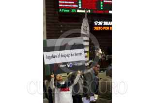 MÉXICO, D.F., 28JULIO2014.- Diputados del PRD, toman la tribuna por unos momentos durante la votación en lo general, durante la sesión extraordinaria en la Cámara de Diputados donde se debaten los dictámenes de las leyes secundarias de la Reforma Energética. FOTO: GUILLERMO PEREA /CUARTOSCURO.COM