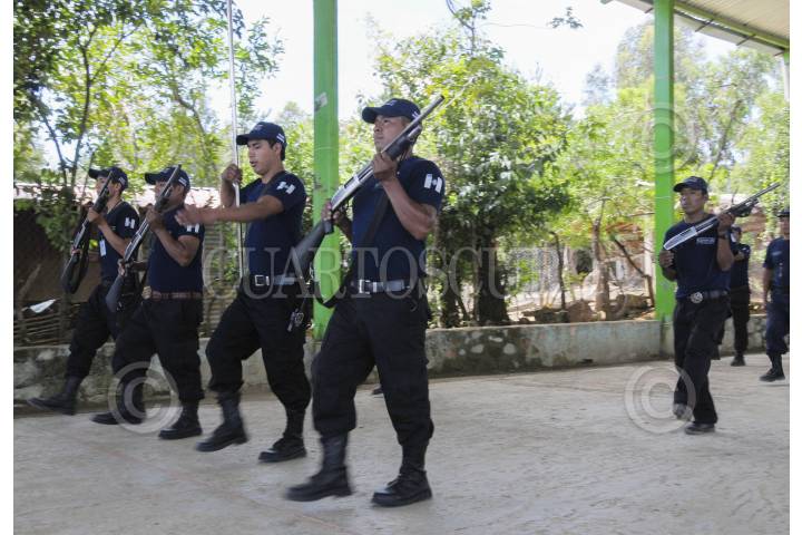 TIXTLA, GUERRERO, 28JULIO2014.- Un grupo de 20 policías rurales que ha creado el gobierno municipal y que brinda seguridad en las comunidades Nahuas del Durazno, La Estacada y el Potrero, recibieron cinco escopetas calibre 12 de manos del director de seguridad publica Rubén Reyes Zepeda, quien reconoció que estas comunidades están muy aparatadas de la cabecera municipal, por lo que en caso de un llamado de auxilio de la ciudadanía su respuesta no sería tan rápida, necesitando una fuerza rural que atienda rápido el llamado. FOTO: JOSÉ I. HERNÁNDEZ /CUARTOSCURO.COM