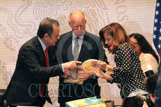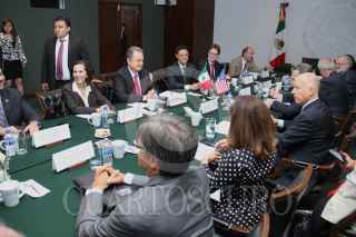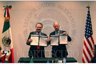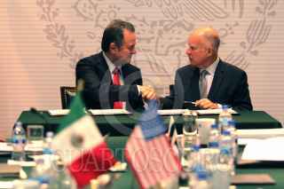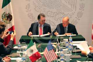 MÉXICO, D.F., 29JULIO2014.- Pedro Joaquín Coldwell, Secretario de Energía, recibió al gobernador de California, Jerry Brown, durante su visita de trabajo por el país. Después de la reunión de trabajo, realizaron la firma de "Memorándum de entendimiento entre la Secretaria de Energía y el Gobierno de California". FOTO: ADOLFO VLADIMIR /CUARTOSCURO.COM