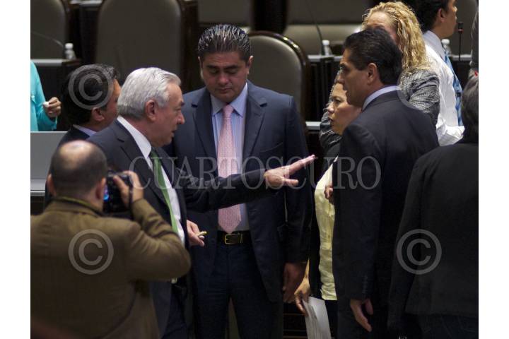 MÉXICO, D.F., 29JULIO2014.- Marco Antonio Bernal, presidente de la Comisión de Energía de la Cámara de Diputados; y Silvano Aureoles Conejo, coordinador del grupo parlamentario del PRD, durante la discusión de la Reforma Energética en el periodo de sesiones extraordinarias del segundo receso del segundo año de ejercicio de la sexagésima legislatura. FOTO: IVÁN STEPHENS /CUARTOSCURO.COM