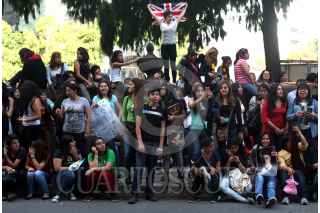 MÉXICO, D.F., 31JULIO2014.- Fans del actor Daniel Radcliffe, protagonista de la pelicula Harry Potter, esperan a las afueras del hotel donde se hospeda en la Ciudad de México ubicado en Paseo de la Reforma tras enterarse de la cancelación de la alfombra roja prevista la tarde de hoy en un Centro Comercial. FOTO: SAÚL LÓPEZ /CUARTOSCURO.COM