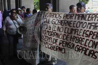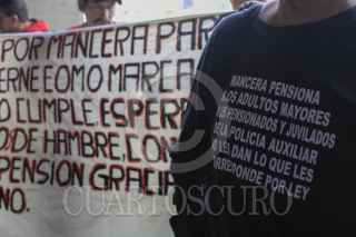 MÉXICO, D.F., 01AGOSTO2014.- Pensionados de la Policía Auxiliar del Distrito Federal exigen el pago de sus pensiones al100 por ciento, ellos alegan que la Caja de Previsión de la Policía Auxiliar, organismo creado en el año 2000 por GDF con el fin de salvaguardar los derechos de los elementos de la Policía Auxiliar solo les paga la mitad, los inconformes se manifestaron afuera del Antiguo Palacio del Ayuntamiento. FOTO: MOISÉS PABLO /CUARTOSCURO.COM