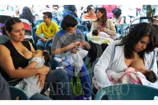 MÉXICO, D.F., 02AGOSTO2014.-Mamás primerizas y algunas ya expertas, acudieron al Parque Batán para romper un récord mundial que consistió en amamantar a sus bebés durante un minuto continuo. A pesar de la poca afluencia, lograron romper la marca pues superaron la meta del año anterior de 98 con ahora 137 madres alimentando a sus bebés. La Organización Mundial de la Salud (OMS) dictaminó la celebración de la Semana de la Lactancia Materna del 01 al 07 de agosto, como recordatorio de lo vital que es que una madre alimente a su bebé de esta forma, pues la lactancia es el mejor modo de proporcionarle al recién nacido los nutrientes que necesita. FOTO: MARÍA JOSÉ MARTÍNEZ /CUARTOSCURO.COM