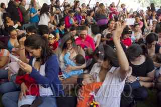 MÉXICO, D.F., 02AGOSTO2014.- Mamás primerizas y algunas ya expertas, acudieron al Parque Batán para romper un récord mundial que consistió en amamantar a sus bebés durante un minuto continuo. A pesar de la poca afluencia, lograron romper la marca pues superaron la meta del año anterior de 98 con ahora 137 madres alimentando a sus bebés. La Organización Mundial de la Salud (OMS) dictaminó la celebración de la Semana de la Lactancia Materna del 01 al 07 de agosto, como recordatorio de lo vital que es que una madre alimente a su bebé de esta forma, pues la lactancia es el mejor modo de proporcionarle al recién nacido los nutrientes que necesita. FOTO: CUARTOSCURO.COM