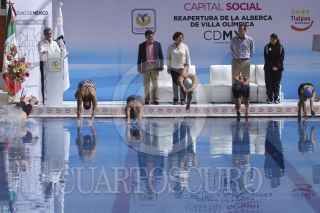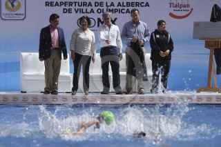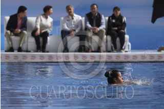 MÉXICO, D.F., 03AGOSTO2014.- Miguel Ángel Mancera, jefe de gobierno capitalino y Maricela Contreras, delegada de Tlalpan, presidieron la inauguración de la remodelación de la Alberca Olímpica, en la cual se invirtió 9 millones 800 mil pesos, informaron las autoridades. La rehabilitación contó con la instalación de celdas colares, sistema de gas y se instaló techo en la alberca. FOTO: ADOLFO VLADIMIR /CUARTOSCURO.COM