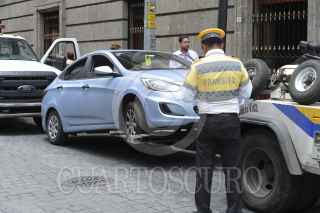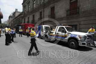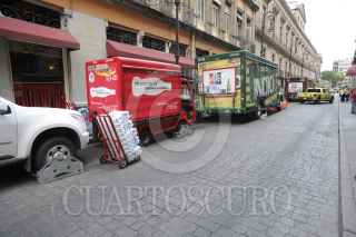 MÉXICO, D.F., 04AGOSTO2014.- En la calle de Filomeno Mata, de la colonia Centro Histórico, se realizó un operativo para retirar camiones de carga y de reparto que descargan mercancía en está via. FOTO: LUIS CARBAYO /CUARTOSCURO.COM