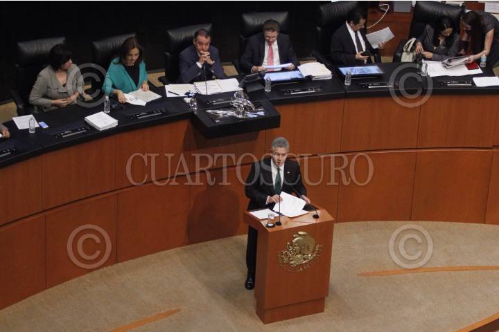MÉXICO, D.F., 04AGOSTO2014.- Emilio Gamboa, coordinador del PRI en el Senado juntó a los senadores de su bancada, Enrique Burgos y Manuel Cabazos y los senadores del PAN Mariana Gómez del Campo y Ernesto Cordero durante la votación de los 3 dictámenes que fueron enviados por la Cámara de Diputados en materia energética. FOTO: ENRIQUE ORDÓÑEZ /CUARTOSCURO.COM