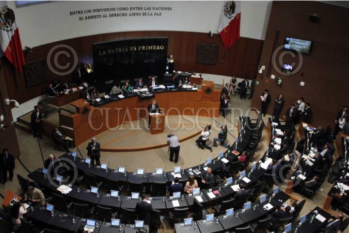 MÉXICO, D.F., 04AGOSTO2014.- Emilio Gamboa, coordinador del PRI en el Senado juntó a los senadores de su bancada, Enrique Burgos y Manuel Cabazos y los senadores del PAN Mariana Gómez del Campo y Ernesto Cordero durante la votación de los 3 dictámenes que fueron enviados por la Cámara de Diputados en materia energética. FOTO: ENRIQUE ORDÓÑEZ /CUARTOSCURO.COM
