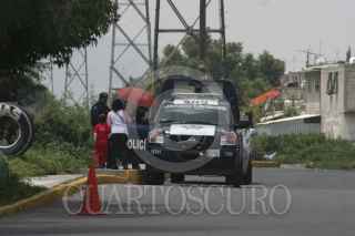 ECATEPEC, EDOMEX, 05AGOSTO2014.- Fue abandonada una camioneta tipo honda color blanca con placas 941-WHY del Distrito Federal, en la calle de División del Norte de la colonia Aquiles Serdan, tras varios días de permanecer estacionado el vehículo, vecinos de de la colonia percibieron que despedía un fétido olor, por lo que lo reportaron a las autoridades, quienes después confirmaron que en su cajuela se hallaron dos cuerpos de hombre que fueron trasladados al Servicio Medico Forense SEMEFO de San Cristóbal Centro. FOTO: LUIS CARBAYO /CUARTOSCURO.COM