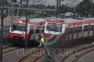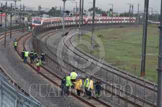 TLANEPANTLA DE BAZ ESTADO DE MÉXICO.- Una falla en el cableado del suministro de la red eléctrica ocasionó que desalojaran a usuarios del tren suburbano a un kilometro de la estación San Rafael. FOTO: SAÚL LOPEZ /CUARTOSCURO.COM