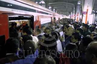 MÉXICO, D.F., 05AGOSTO2014.- cientos de usuarios del tren suburbano, se vieron afectados por una falla eléctrica en los trenes misma que ocasiono un lento avancé. FOTO: ENRIQUE ORDÓÑEZ /CUARTOSCURO.COM
