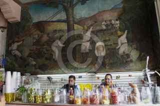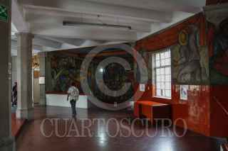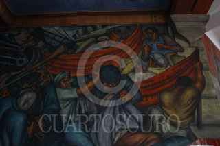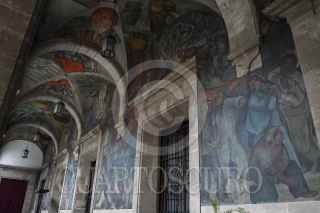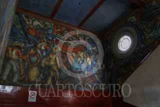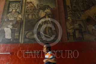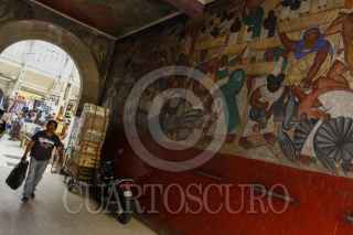 MÉXICO, D.F., 06AGOSTO2014.- Los muros internos del Mercado Presidente Abelardo L. Rodríguez resguardan los murales realizados por algunos discípulos de Diego Rivera. Construido en 1934 dentro del primer cuadro de la ciudad, el mercado tiene valor patrimonial porque contiene murales de Isamu Noguchi, Marion Greenwood, Pablo O'Higgins y Ángel Bracho. Los murales están distribuidos en los principales accesos, escaleras y primer piso. La temática de los murales es en torno a asuntos socialistas como la explotación de los trabajadores, campesinos y mineros; la lucha contra el nazismo y el fascismo, y la discriminación racial. FOTO: RODOLFO ANGULO /CUARTOSCURO.COM
