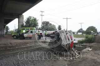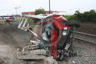 ECATEPEC, EDOMEX, 06AGOSTO2014.- Una camioneta modelo "estaquitas" fue embestida por el tren en las vías que se ubican en la colonia Las Américas. No se presentaron lesionados. FOTO: LUIS CARBAYO /CUARTOSCURO.COM