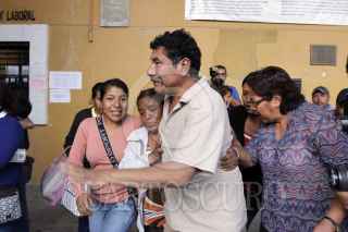 SAN PEDRO CHOLULA, PUEBLA, 06AGOSTO2014.- Familiares y amigos recibieron a los cuatro habitantes detenidos en el conflicto de Chalchihuapan, fueron liberados en el CERESO de San Pedro Cholula tras pagar una fianza de 7 mil pesos y permanecer recluidos cerca de un mes. FOTO: HILDA RÍOS/ CUARTOSCURO.COM