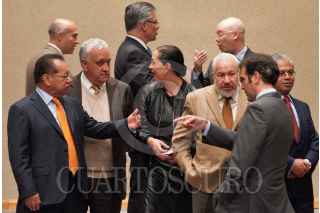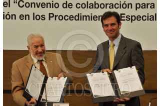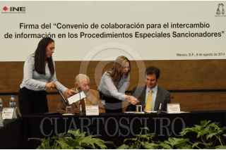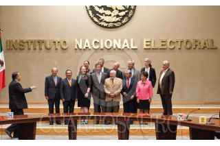 MÉXICO, D .F.. 08AGOSTO2014.- Alejandro Luna Ramos, Magistrado presidente del Tribunal Electoral del Poder Judicial de la Nación (TEPJF), y Lorenzo Córdova, consejero presidente del Instituto Nacional Electoral (INE), firmaron un “Convenio de colaboración para el intercambio de información en los Procedimientos Especiales Sancionadores” que convengan para el próximo periodo electoral en 2015. Previo a la firma del convenio los consejeros electorales y magistrados acudieron a la sala de sesiones del INE a realizar la toma de la fotografía oficial. FOTO: MARÍA JOSÉ MARTÍNEZ /CUARTOSCURO.COM