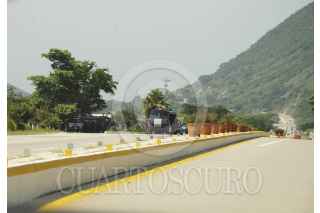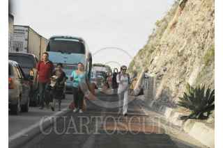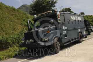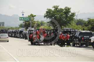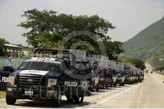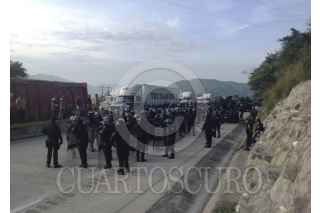 CHILPANCINGO, GUERRERO, 08AGOSTO2014.- Ciudadanos que simpatizan con la Unión de Pueblos y Organizaciones Sociales del Estado de Guerrero (UPOEG) que bloquearon en punto de la 5 de la tarde el crucero de Ayutla en Tierra Colorada jueves 7 del mes en curso, el mismo día pero horas después iniciaron a bloquear el punto conocido como Mojoneras de Chilpancingo en la carretera federal municipio y la autopista del Sol, trascendió que inicio el bloqueo en estos puntos a las 11 de la noche del jueves y duro el resto de la noche, hasta las diez y media de la mañana del viernes. Durante la mañana cientos de agentes federales y estatales llegaron hasta el lugar de los hechos con equipo antimotines, esperando la orden de desalojo de los bloqueadores de las vías, quienes después de un dialogo liberaron la arteria vehicular. FOTO: JOSÉ I. HERNÁNDEZ /CUARTOSCURO.COM