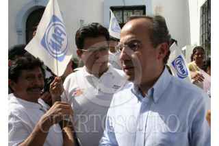 MÉRIDA, YUCATÁN 28ENERO2006.- Felipe Calderón Hinojosa, candidato del PAN a la presidencia de la República, durante su gira proselitista por la entidad. FOTO: Alfredo Guerrero/CUARTOSCURO.COM