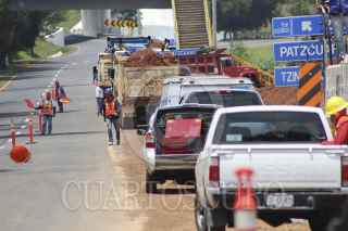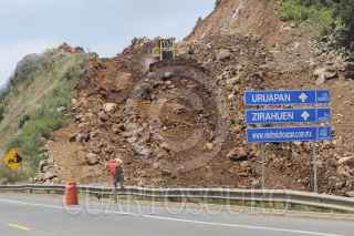 PATZCUARO, MICHOACÁN, 11AGOSTO2014. Transportistas de materiales pertenecientes de la Confederación de Trabajadores de México (CTM) bloquearon la carretera Morelia-Pátzcuaro, justo en la entrada de la obra Construcar que forma parte del proyecto Autopista de Michoacán, para exigir al gobierno del estado la misma oportunidad de trabajo que otros materialistas. FOTO: JUAN JOSÉ ESTRADA SERAFÍN /CUARTOSCURO.COM