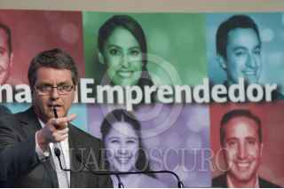 MÉXICO, D.F., 11AGOSTO2014.- Roberto Azevedo, presidente de la Organización Mundial del Comercio; e Ildefonso Guajardo, Secretario de Economía, en la Semana del Emprendedor que se lleva a cabo en el Centro BANAMEX. FOTO: IVÁN STEPHENS /CUARTOSCURO.COM