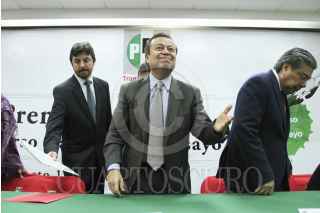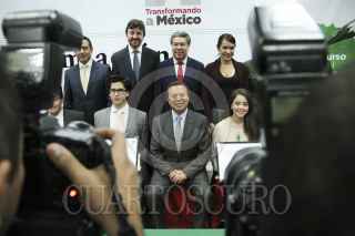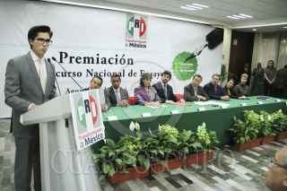 MÉXICO, D.F., 12AGOSTO2014.- Cesar Camacho Quiroz, presidente nacional del Partido Revolucionario Institucional (PRI), Samuel Aguilar, Secretario de Acción Electoral del partido y Javier Vega, Secretario de Asuntos Internacionales del PRI, durante la ceremonia de premiación del Primer Concurso Nacional de Ensayo "Día de la juventud" realizado en el salón Alfonso Reyes del CEN del PRI. FOTO: ADOLFO VLADIMIR /CUARTOSCURO.COM
