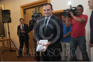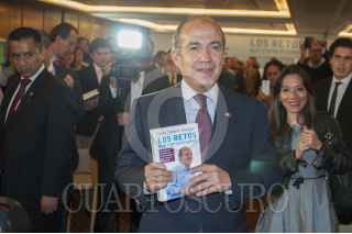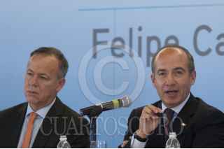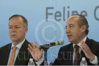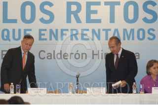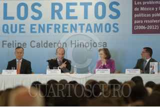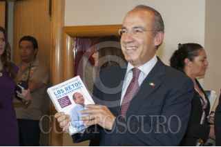 MÉXICO, D.F., 13AGOSTO2014.- Felipe Calderón Hinojosa, ex presidente de México, presentó su libro "Los retos que enfrentamos: Los problemas de México y las políticas públicas para resolverlos" en el Club de Industriales. El presentador de noticias, Ciro Gómez Leyva, presentó el libro. FOTO: IVÁN STEPHENS /CUARTOSCURO.COM