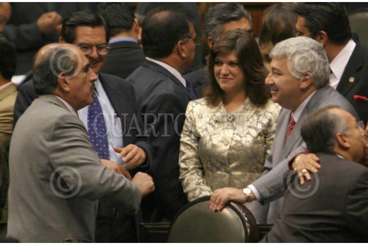 MEXICO, D.F. 01FEBRERO2006.- El senador Manuel Bartlett , Pablo Gomez, lider de la fracción parlamentaria del PRD en la cámarade diputados y el sedador César Raúl Ojeda, previo a la sesión solemne en San Lázaro. FOTO. Nelly Salas/CUARTOSCURO.COM