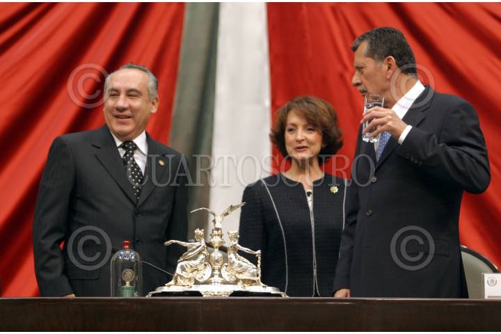 MEXICO, D.F. 01FEBRERO2006.- El senador Manuel Bartlett , Pablo Gomez, lider de la fracción parlamentaria del PRD en la cámarade diputados y el sedador César Raúl Ojeda, previo a la sesión solemne en San Lázaro. FOTO. Nelly Salas/CUARTOSCURO.COM