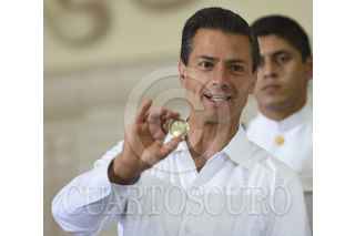 ALVARADO, VERACRUZ, 14AGOSTO2014.- El Presidente Enrique Peña Nieto encabezó hoy la ceremonia en que se puso en circulación la moneda de veinte pesos conmemorativa de la Gesta Heroica de Veracruz de 1914, durante la cual externó su reconocimiento a las instituciones armadas del país; “están comprometidas para apoyar las tareas que deparen a los mexicanos condiciones de mayor bienestar, sobre todo en su seguridad y en la salvaguarda de nuestro territorio y de nuestra integridad nacional”, aseveró. FOTO: PRESIDENCIA /CUARTOSCURO.COM
