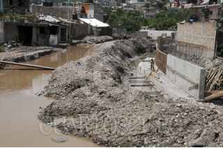 CHILPANCINGO, GUERRERO, 14AGOSTO2014.- Trabajos del encauzamiento del rio Huacapa a la altura del puente de la colonia San Rafael, donde se trabaja en el encauzamiento a marchas forzadas, el tiempo les ha ganado lo que pone a familias en peligro ante posibles desbordamientos. FOTO: JOSÉ I. HERNÁNDEZ /CUARTOSCURO.COM