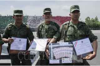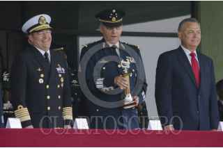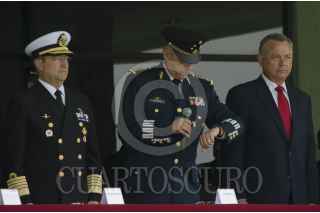 MÉXICO, D.F., 16AGOSTO2014.- Salvador Cienfuegos Zepeda, secretario de Defensa, y Vidal Francisco Soberón Sanz, secretario de Marina, en compañía de la plana mayor del Ejército y Fuerza Aérea, otorgaron los reconocimientos correspondientes a los primeros lugares del Primer Concurso Nacional de Tiro 2014. FOTO: MARÍA JOSÉ MARTÍNEZ /CUARTOSCURO.COM