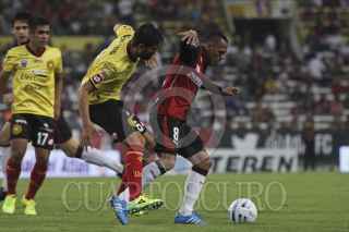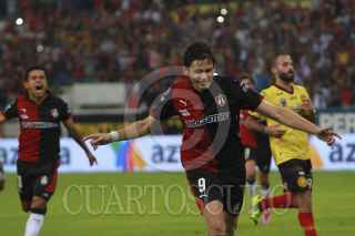 GUADALAJARA, JALISCO, 16AGOSTO2014.- Los Zorros del Atlas se enfrentaron a Leones Negros de la Universidad de Guadalajara con marcador final de un gol a cero a favor de Atlas en partido correspondiente a la Jornada 5 del Torneo Apertura 2014 de la Liga MX. En la imagen el jugador del Atlas Luis Caballero celebra su anotación, misma que le dio la victoria a su equipo. FOTO: FERNANDO CARRANZA GARCIA /CUARTOSCURO.COM
