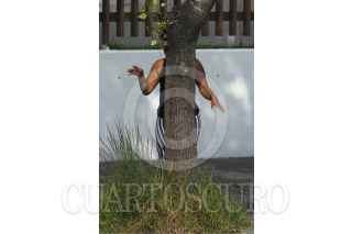 MÉXICO, D.F., 17AGOSTO2014.- Una mujer presuntamente trabajadora sexual, espera algún cliente detrás de un árbol sobre la acera de Jesús García esquina con Luis Donaldo Colosio en la delegación Cuauhtémoc. FOTO:ENRIQUE ORDÓÑEZ /CUARTOSCURO.COM