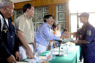 CHILPANCINGO, GUERRERO 01 FEBRERO 2006.- El alcalde de Chilpancingo Mario Moreno Arcos, entregó estimulos económicos a los policias municipales destacados por su valor y desempeño en sus funciones, realizado en el Ayuntamiento de la ciudad de Chilpancingo. FOTO: Oscar Alvarado/CUARTOSCURO.COM